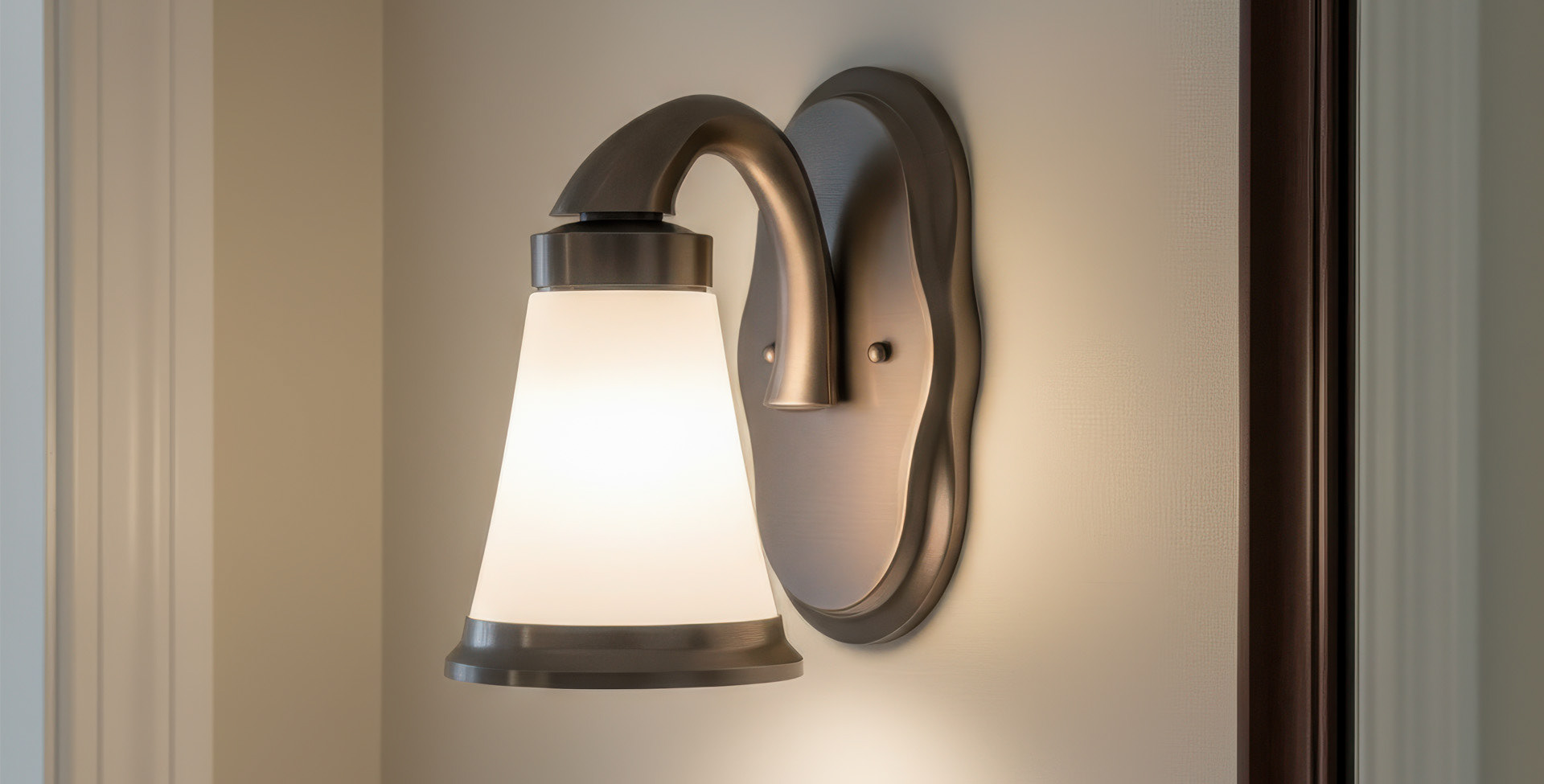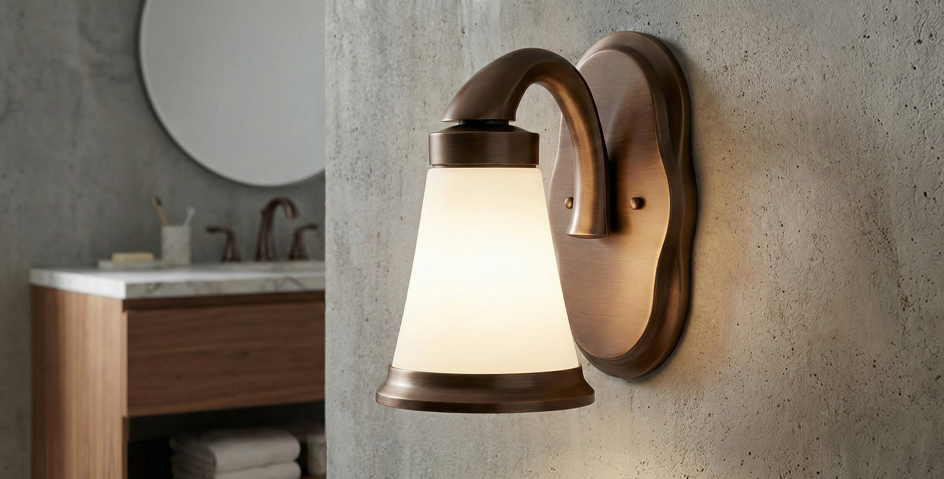 The fixture’s curved arm and flared glass diffuser draw directly from the faucet’s silhouette, adapting it to emit soft, even illumination. The form was refined through iterative 3D modeling and rapid prototyping to resolve transitions and proportion before production. The result delivers cohesion across the Moen Eva collection while functioning as a resolved, standalone piece within the bathroom environment.